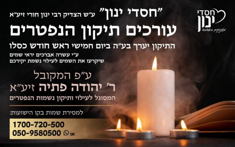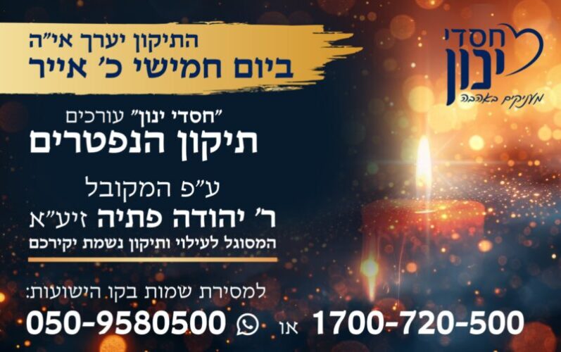 אתה קם בבקר ונסיון חדש בפתח, בריאות, פרנסה, חינוך ילדים, שלום בית, שידוך...כמו גל צונאמי שמאיים להטביע אותך...כל אחד והחבילה הפרטית והמדויקת שלו... וכולנו באותה סירה! "פדיון נפש" ב"חסדי ינון" להמתקת הדינים ולביטול גזרות...לישועות ובשורות טובות...